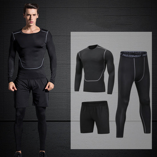 Men'S 3-Piece Workout Clothes Long-Sleeved Tight-Fitting Sportswear