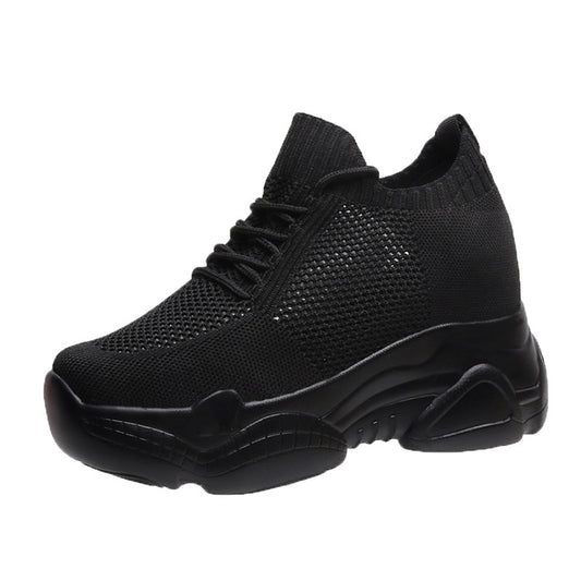 Heightening Sports Shoes For Women With Round Toe Tie Ups